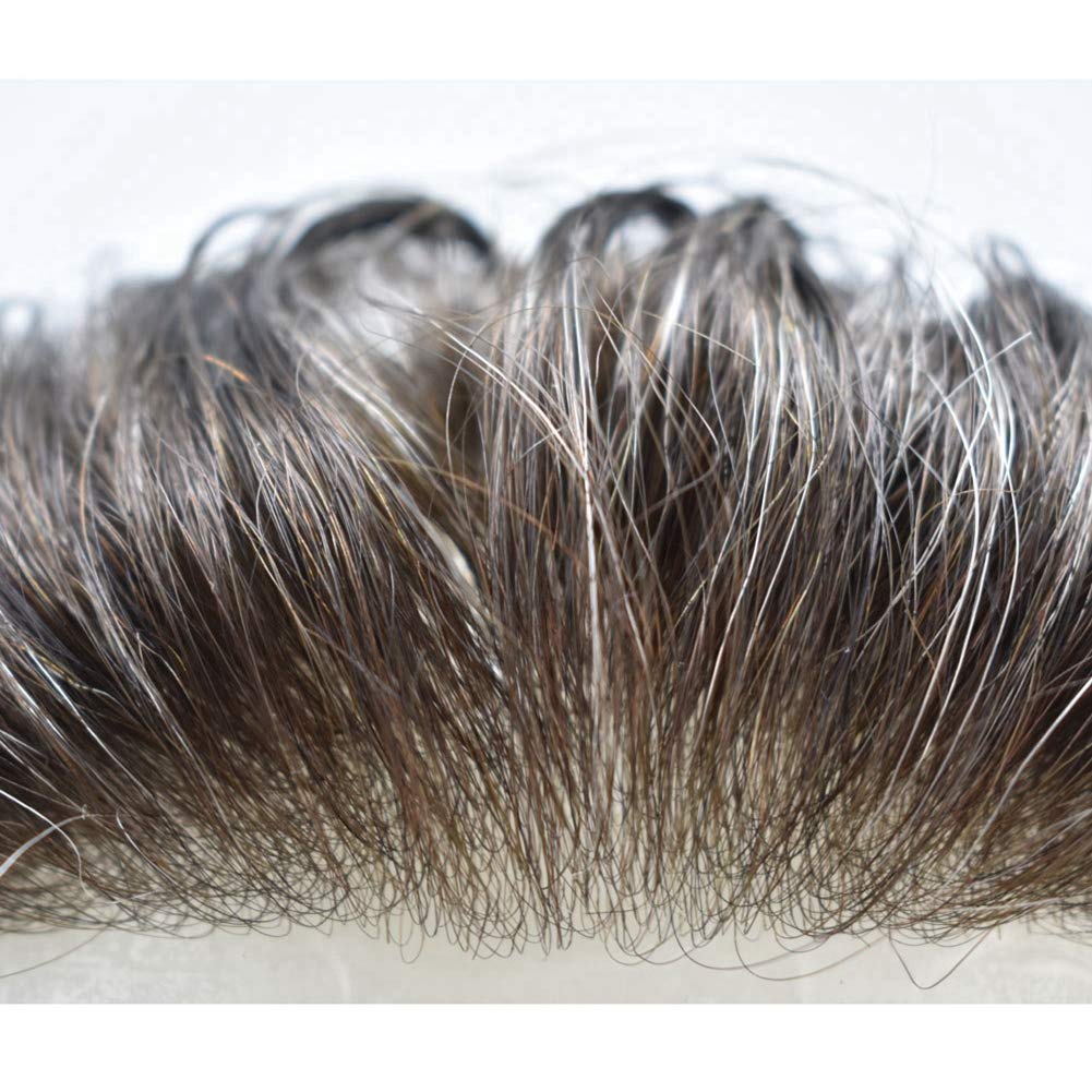 Super Thin Skin Mens Toupee 0.03mm Ultra Thin Skin Hair System For Men Human Hair Black Brown Blonde Gray V-looped Hairpiece 8”x10” 90% Light Density, #1B05 Natural Black With 5% Gray
