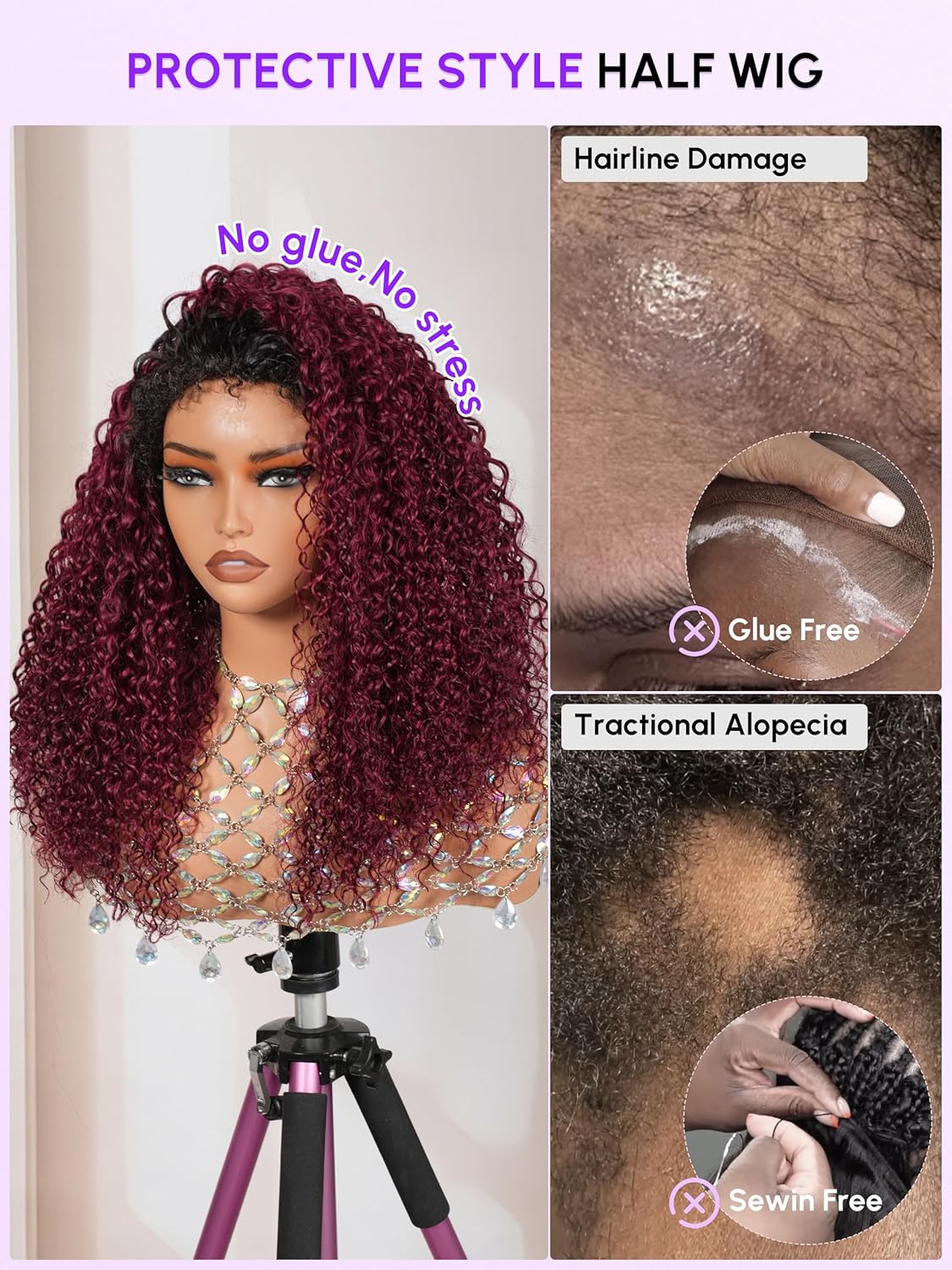 Get Gorgeous Hair with the 20IN Burgundy Wave Half Wig