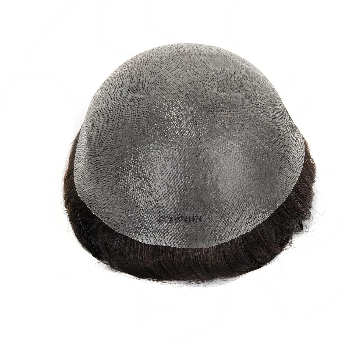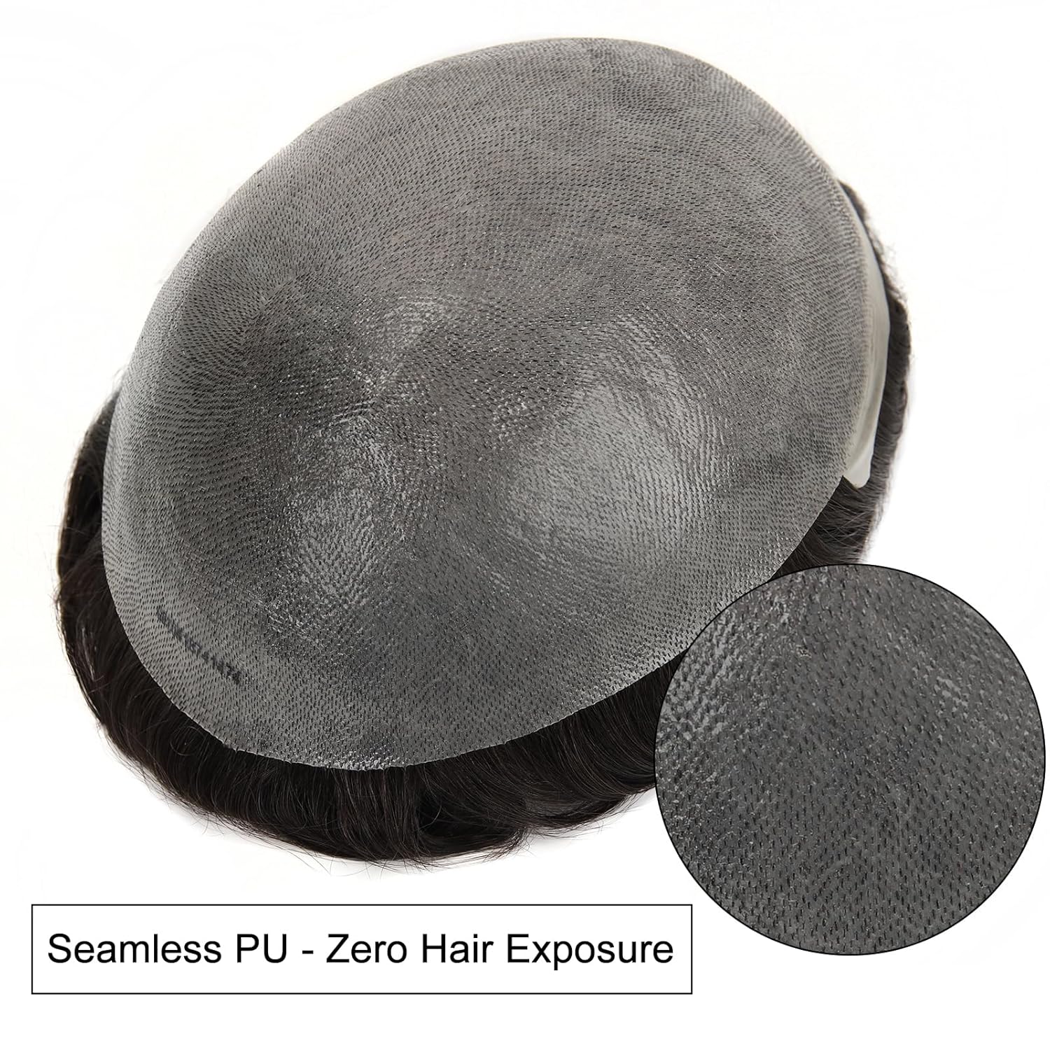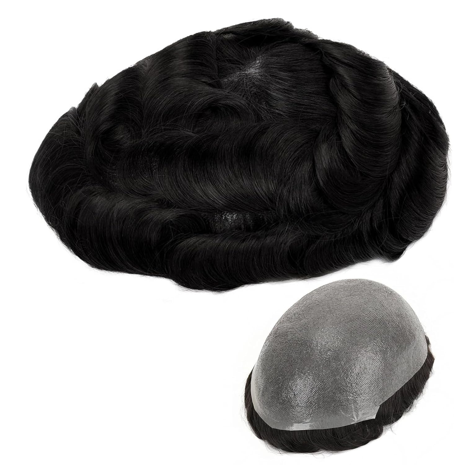 Fraud Blocker Topunique 0.06mm Thin Skin Toupee for Men, 8×10 Inch PU Base with Knotless V-Looped Invisible Hairline 100% Medium Density Remy Human Hair #1C Black | Wigsretail44.com