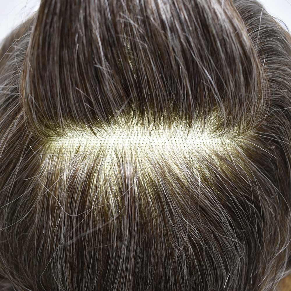 Fraud Blocker Toupee For Men 100% European Remy Human Hair Replacement Systems Durable Fine Monofilament Mens Hairpieces And Toupees Poly Coated Mens Hair System#350 Dark Brown+50% Grey8X10 | Wigsretail44.com