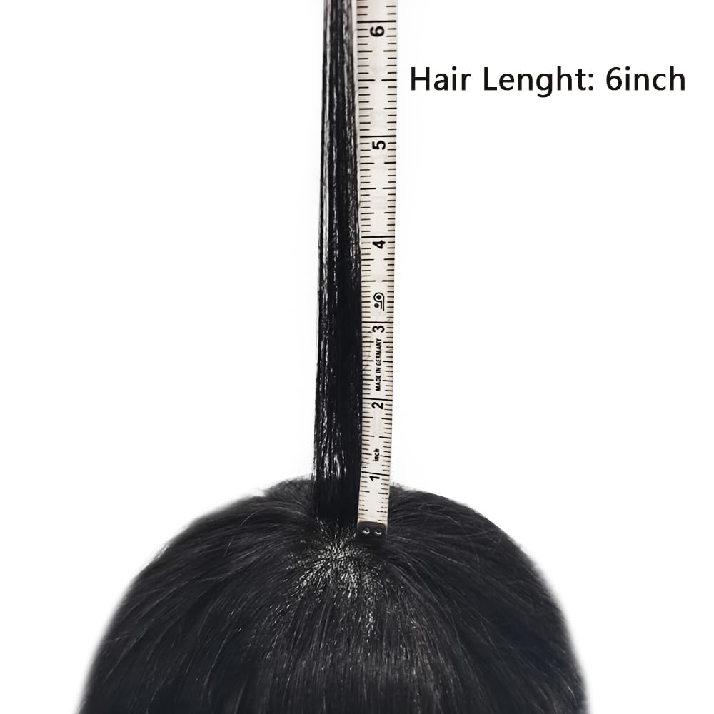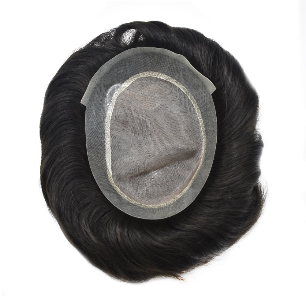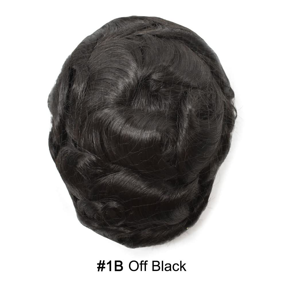 Fraud Blocker Toupee for Men Hair System Replacement Natural Black Mens Human Hair Piece Fine Mono Mens Toupee Clear Poly Skin Around Hairpiece Monofilament Wig Durable PU(6″X8″,#1B Off Black-130% Medium Density) | Wigsretail44.com