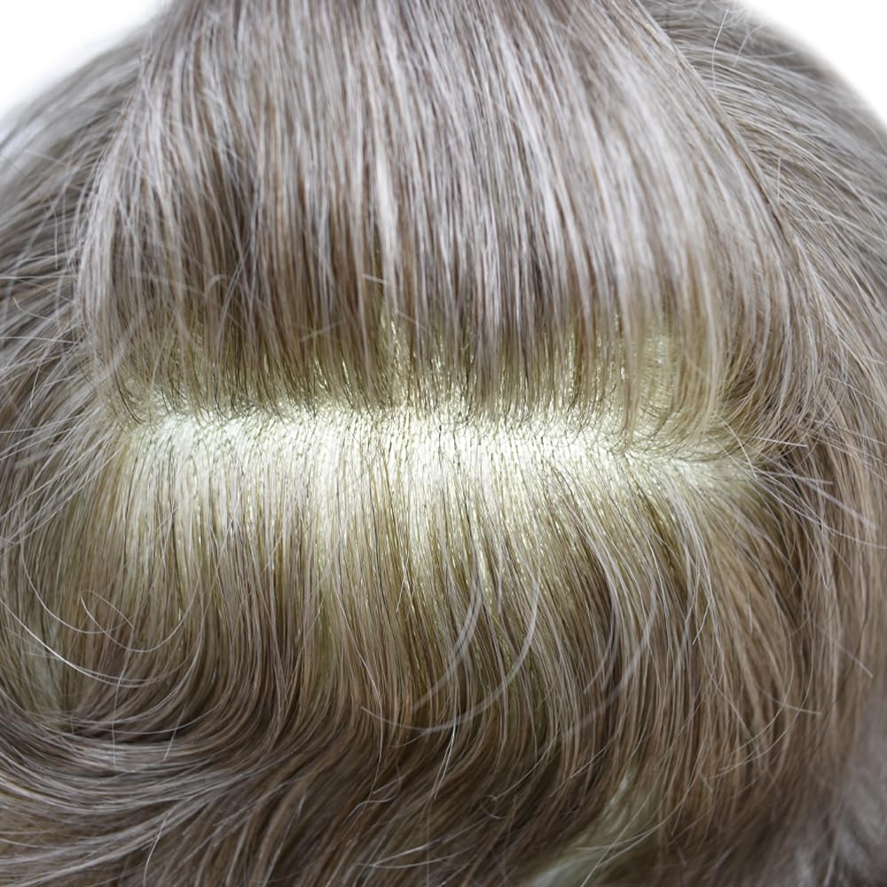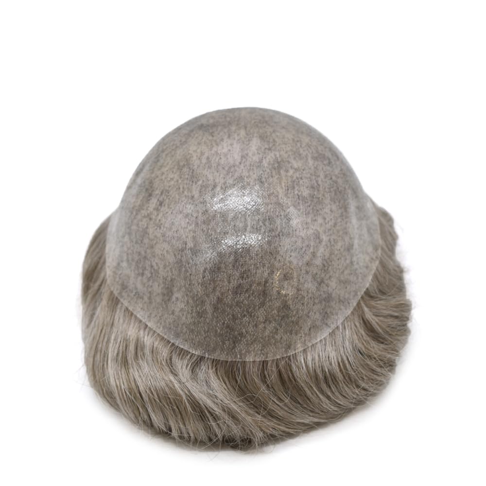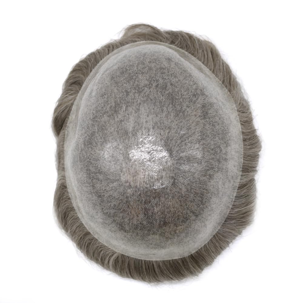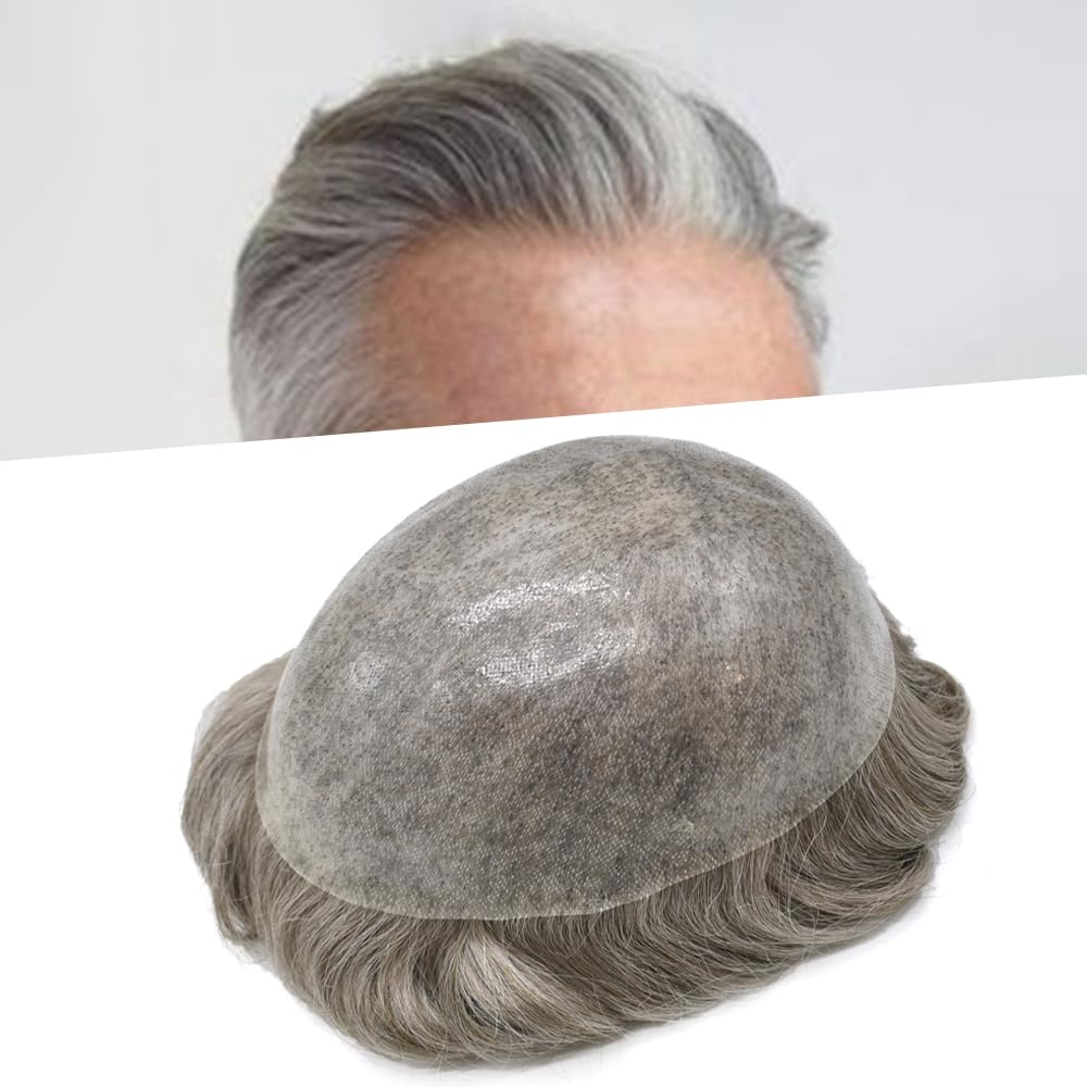 Fraud Blocker Toupee For Men Poly Skin Mens Toupee Straight Hair Pieces Prosthesis For Men Hair Replacement System For Men Hair System Real Human Hair8x10Medium light density#565 5# MEDIUM LIGHT BROWN+65% GREY | Wigsretail44.com
