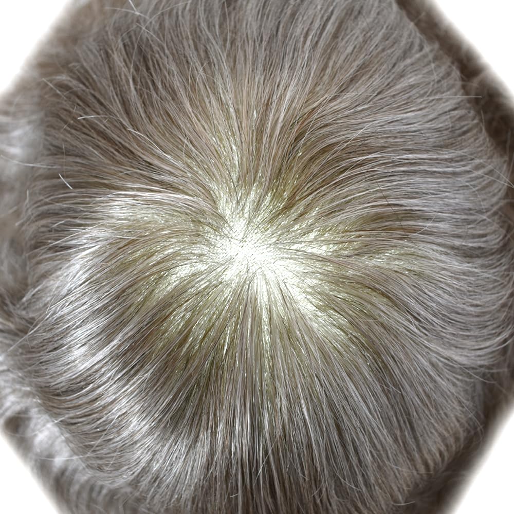Toupee For Men Poly Skin Mens Toupee Straight Hair Pieces Prosthesis For Men Hair Replacement System For Men Hair System Real Human Hair8x10Medium light density#565 5# MEDIUM LIGHT BROWN+65% GREY