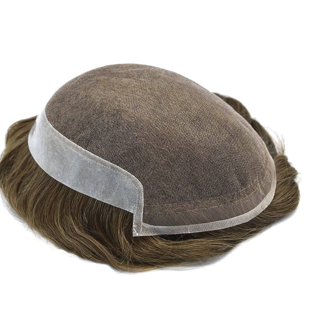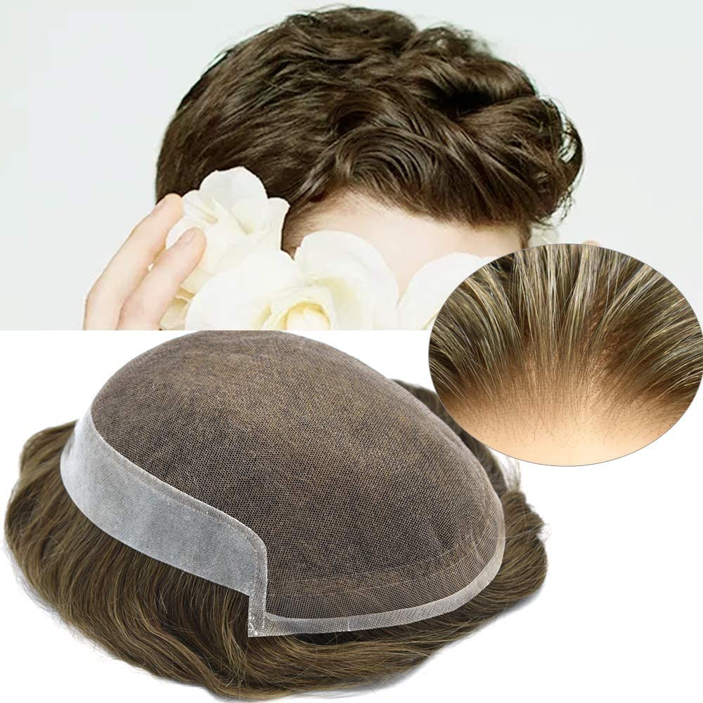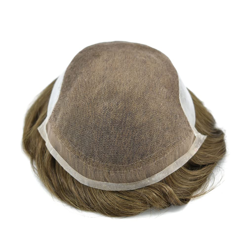 Fraud Blocker Toupee For Men Swiss Lace Hair System Men Hair Pieces Real Human Hair Units Lace Front Mens Toupee White Gray Hair Replacement Bleached Knots Natural Hairline Black Brown Blonde Men Hair Systems US Stock. (7″X9″-90% Light Density, 1810# 18# Medium Blonde+10% Sythetic Grey) | Wigsretail44.com