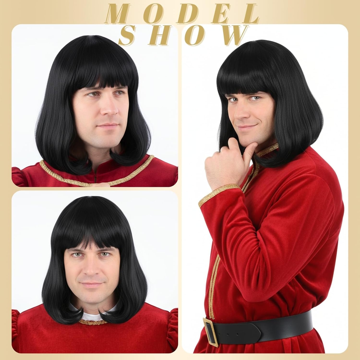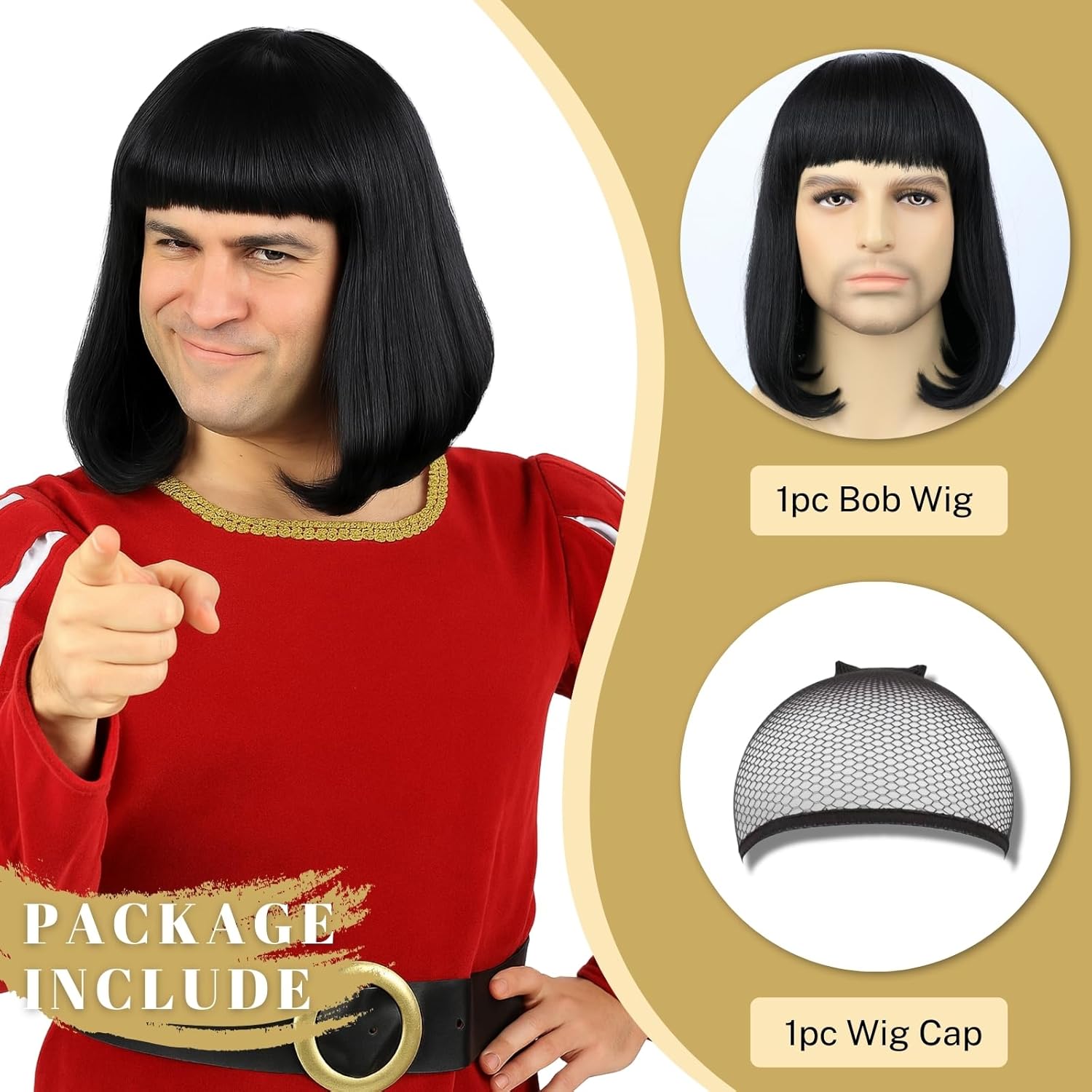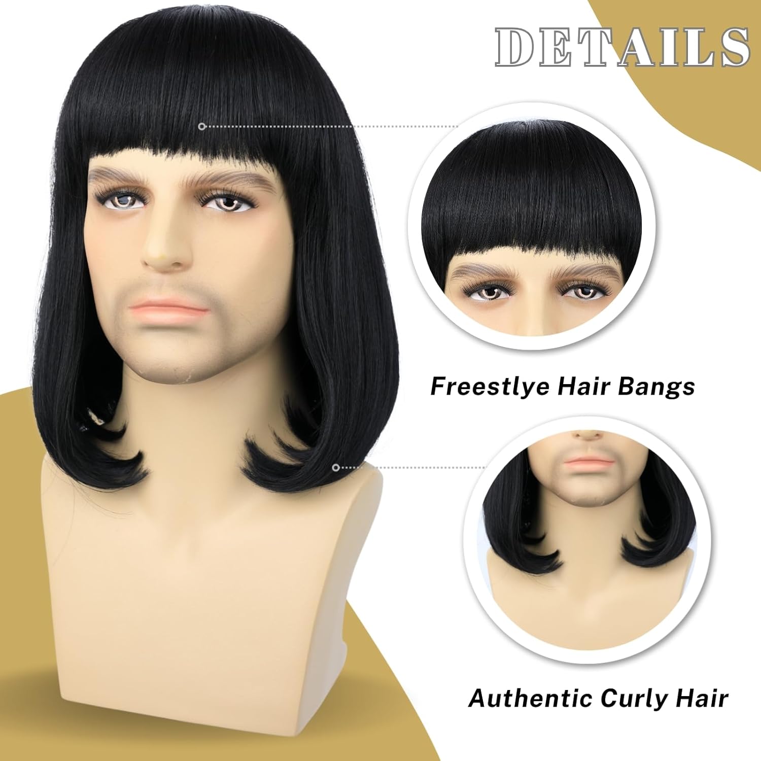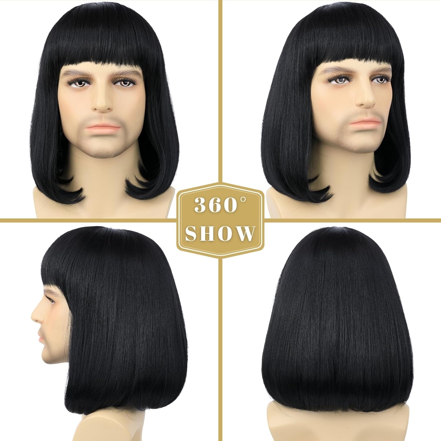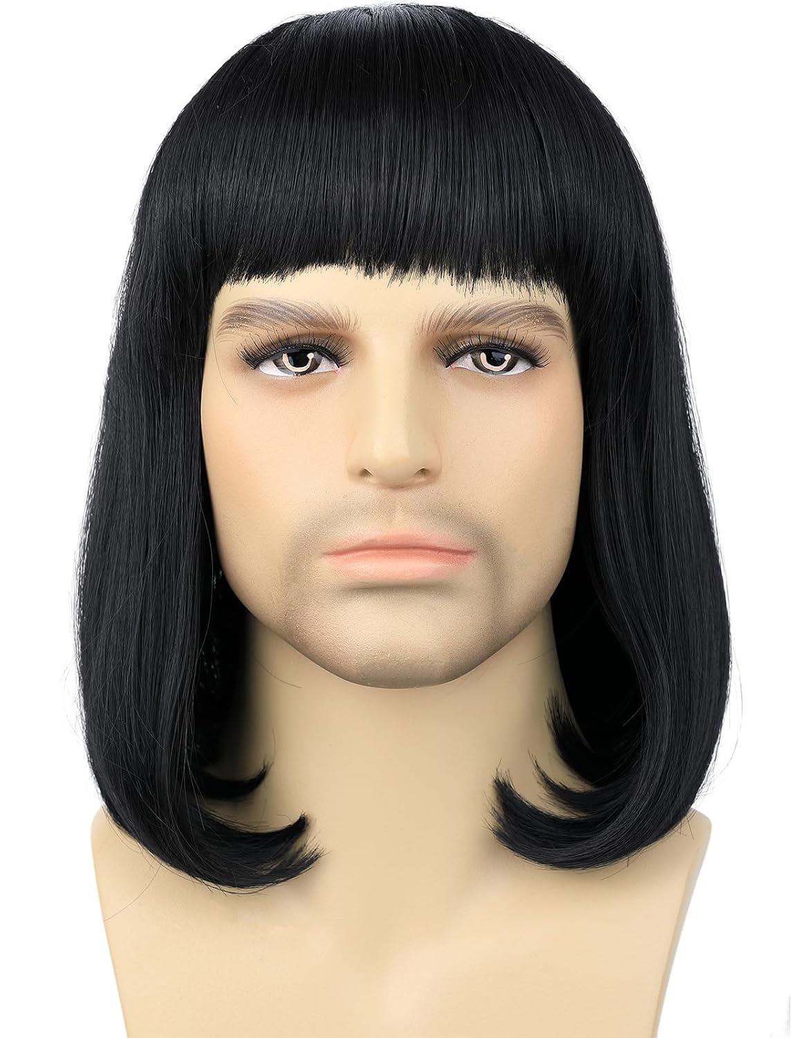 Fraud Blocker Unisex Black Wig with Bangs Short Straight Black Bob Wig for Mens Halloween Costumes Cosplay Party (Black) | Wigsretail44.com