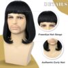 Unisex Black Wig with Bangs Short Straight Black Bob Wig for Mens Halloween Costumes Cosplay Party (Black)