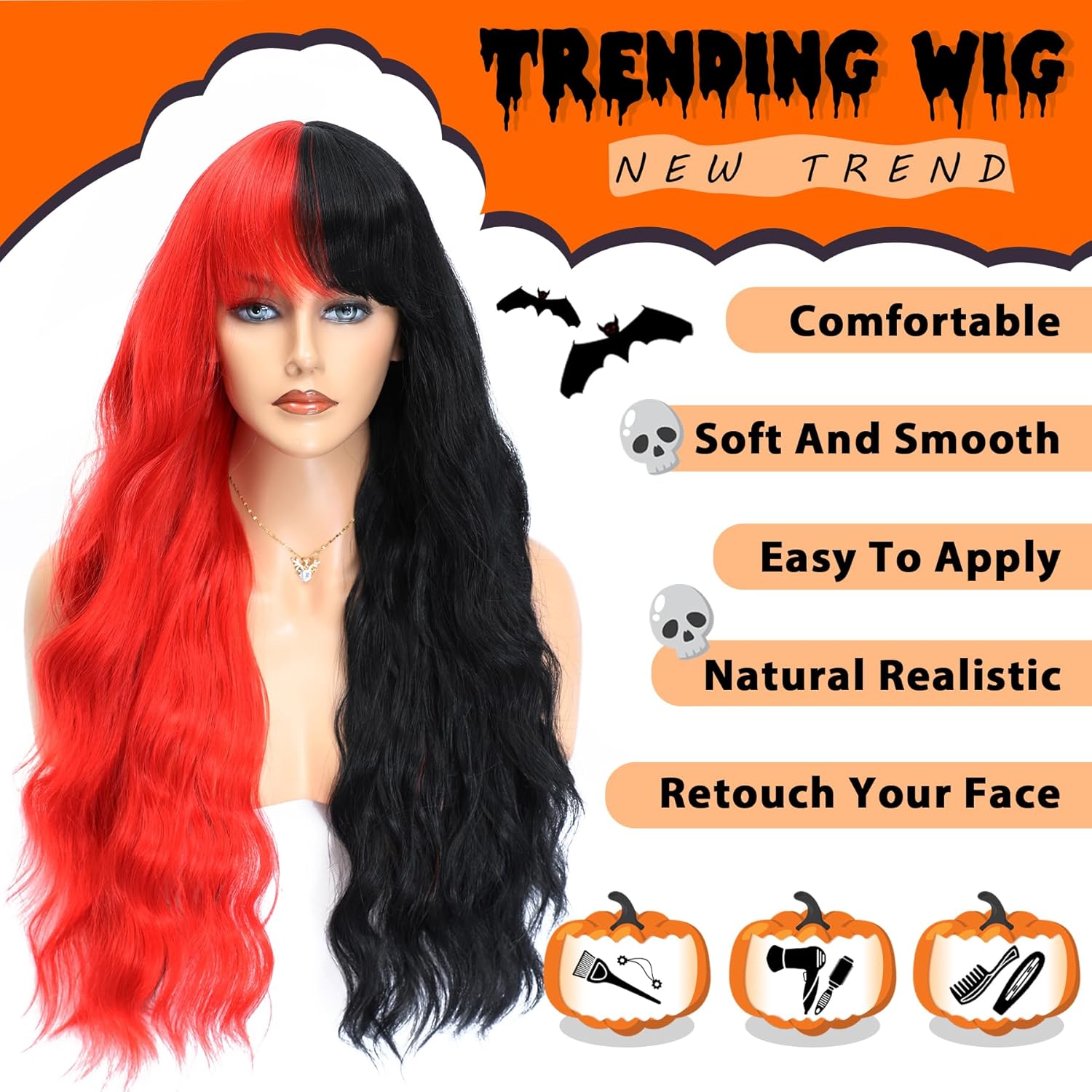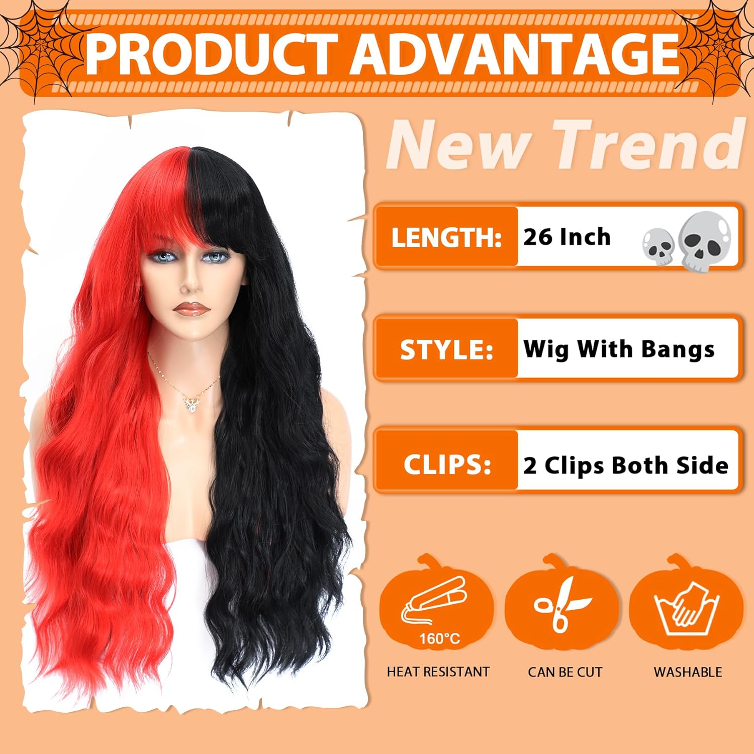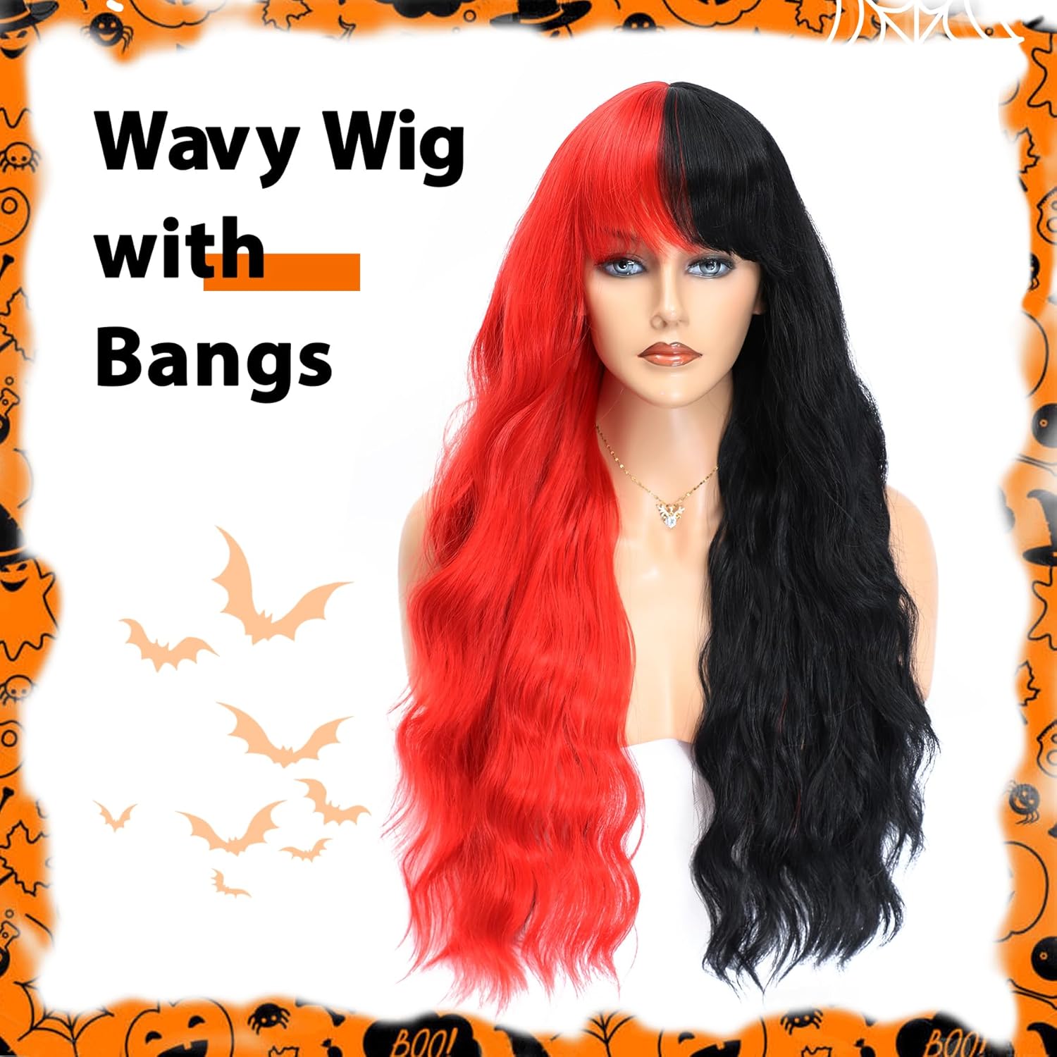 – Wig Type: Long wavy with bangs