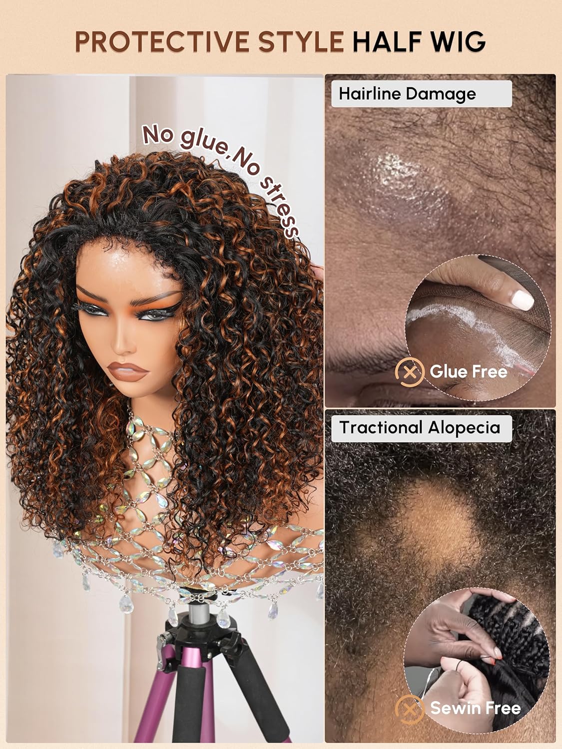 Don’t miss out on the opportunity to upgrade your hair game with the 1B/30 Balayage Wave Half Wig. Check it out on Amazon today and say goodbye to shedding, tangling, and high-maintenance hair extensions for good.