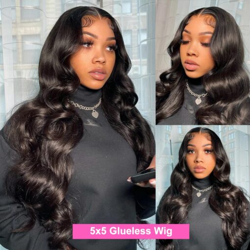 Fraud Blocker Wear and Go Glueless Wigs Human Hair Pre Cut HD Lace 5X5 Body Wave Lace Wigs Human Hair Pre Plucked 180% Density 3 Seconds to Wear Glueless Wigs for Beginners 28 Inch, Black | Wigsretail44.com