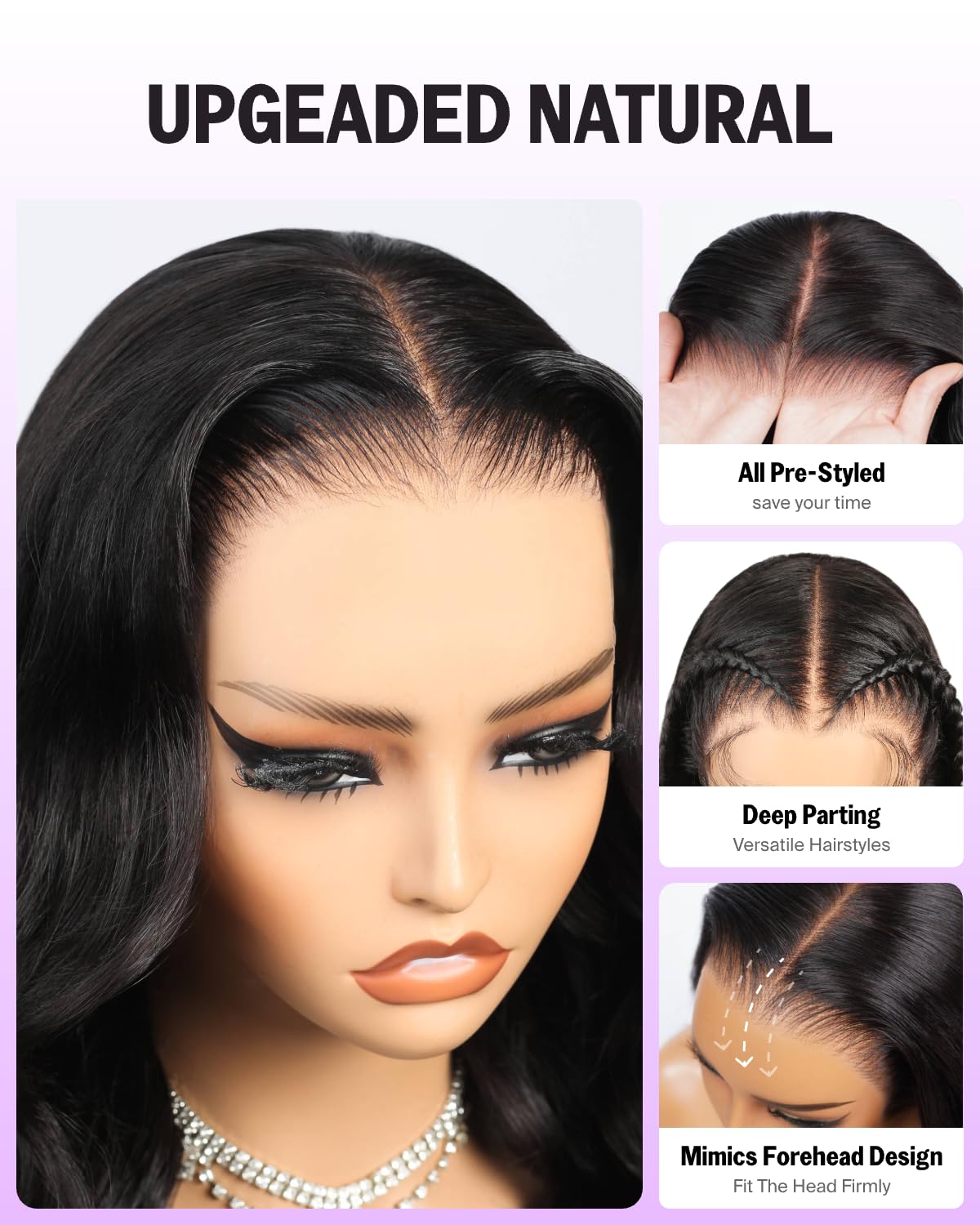 – Pre-plucked hairline