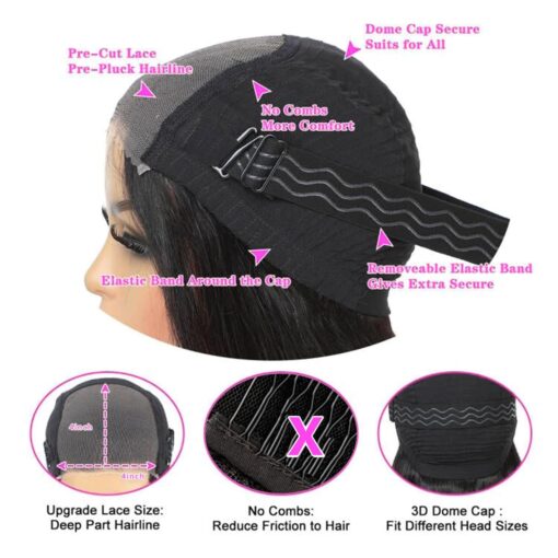 – Lace: 4×4 closure with pre-plucked HD lace