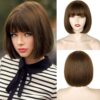 Fraud Blocker WERD Short Brown Bob Wig with Bangs,10 inch Brown Straight Bob Wig for Women Heat Resistant Fiber for Cospaly Velma | Wigsretail44.com