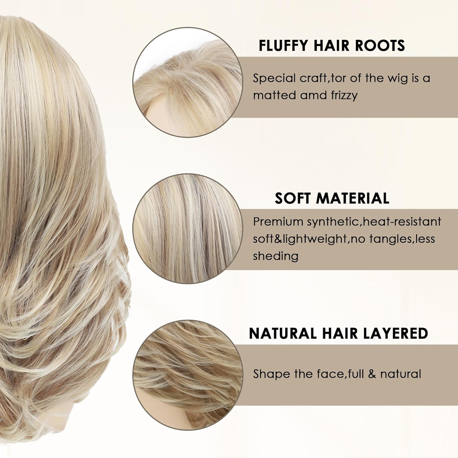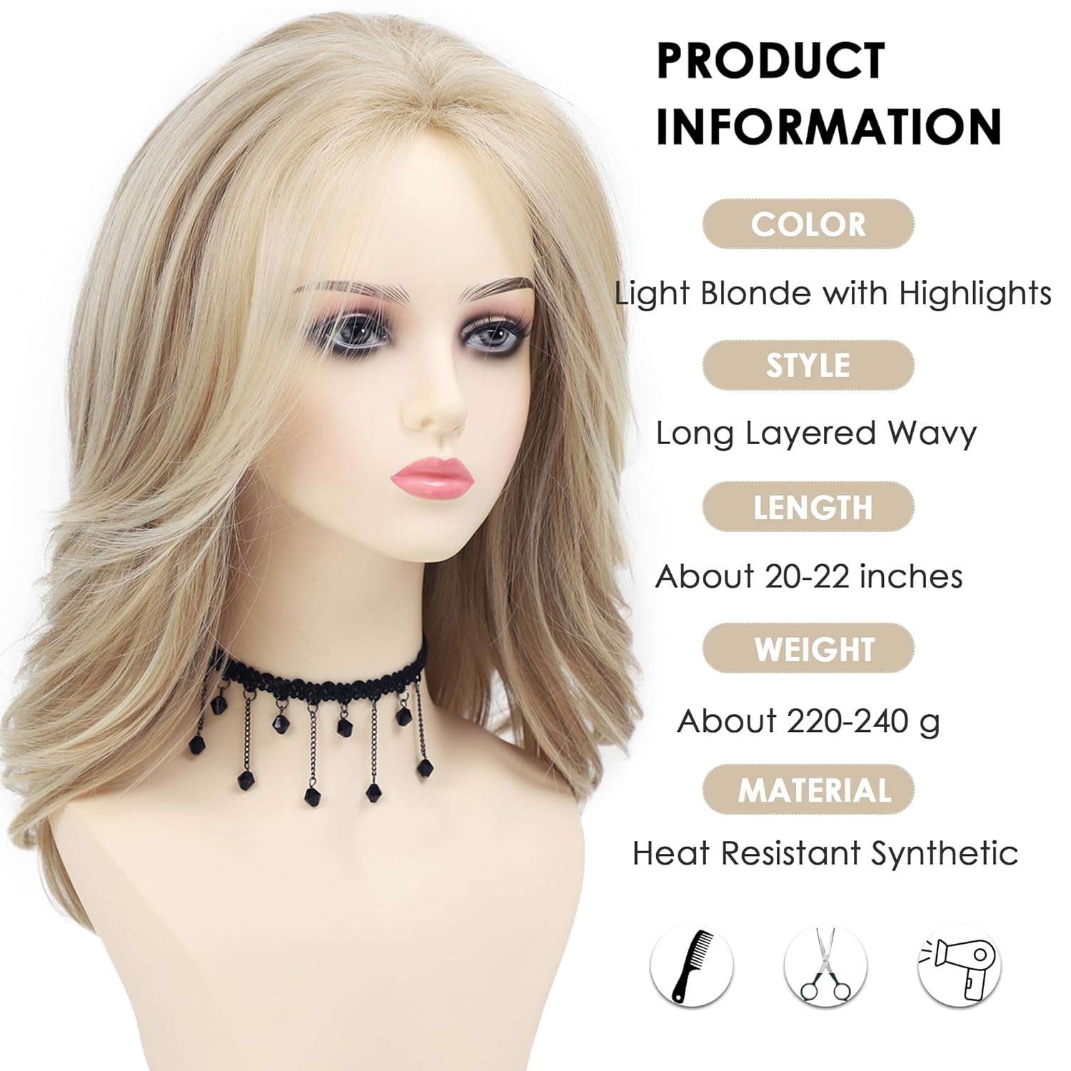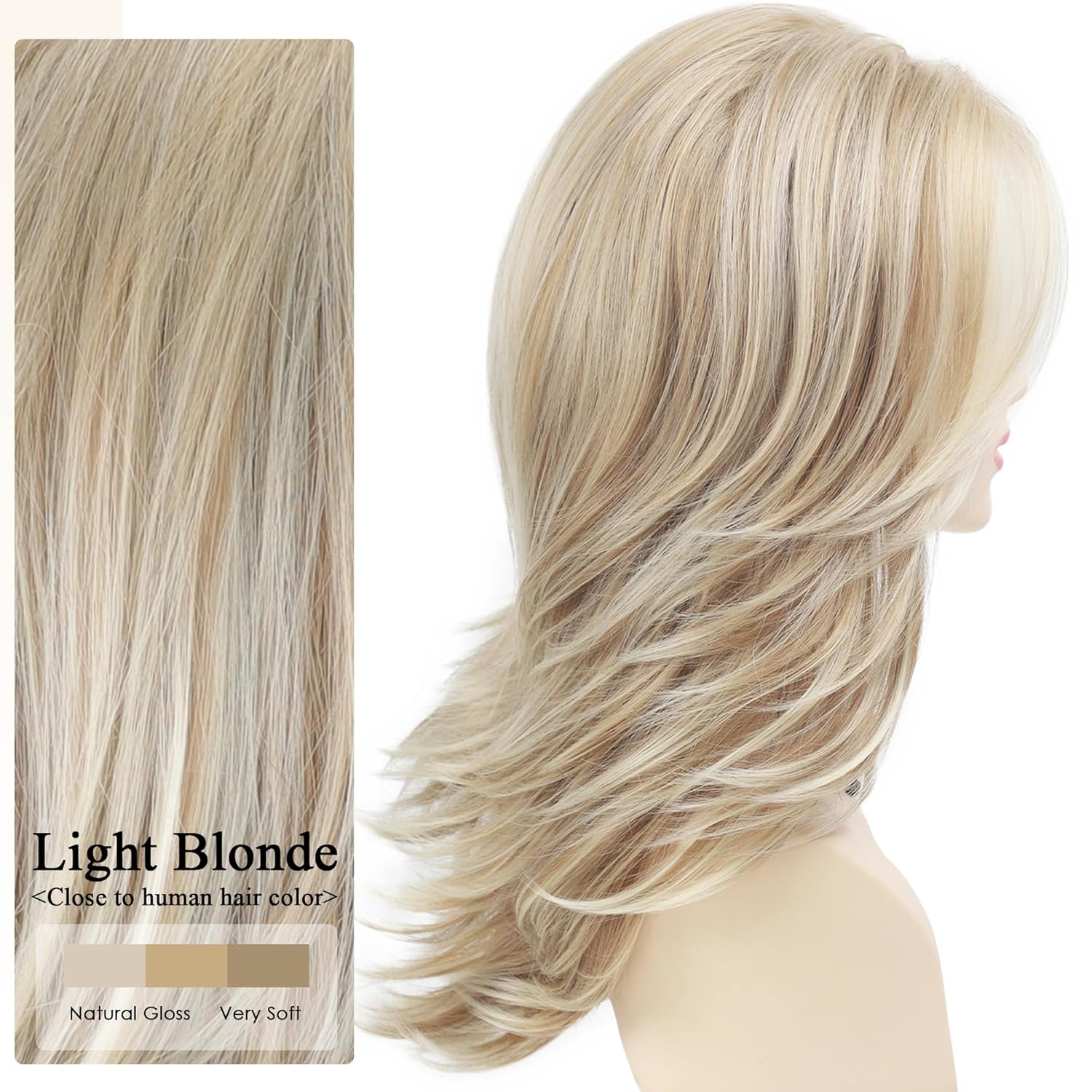 This long layered blonde wig is a must-have for those looking to add a touch of style and personality to their look. The wig is natural looking and full of fashion sense, providing you with the confidence and praise you deserve. Made of high temperature resistant synthetic fiber, this wig is soft and similar to real hair.