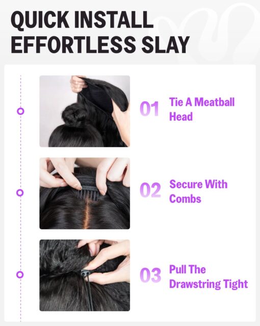 – Glueless design for easy wear