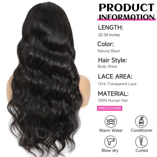 Wingirl 180 Density 13×4 HD Lace Front Wigs Human Hair Pre Plucked with Baby Hair Transparent Glueless Brazilian Deep Wave Frontal Wigs for Women Natural Black Color