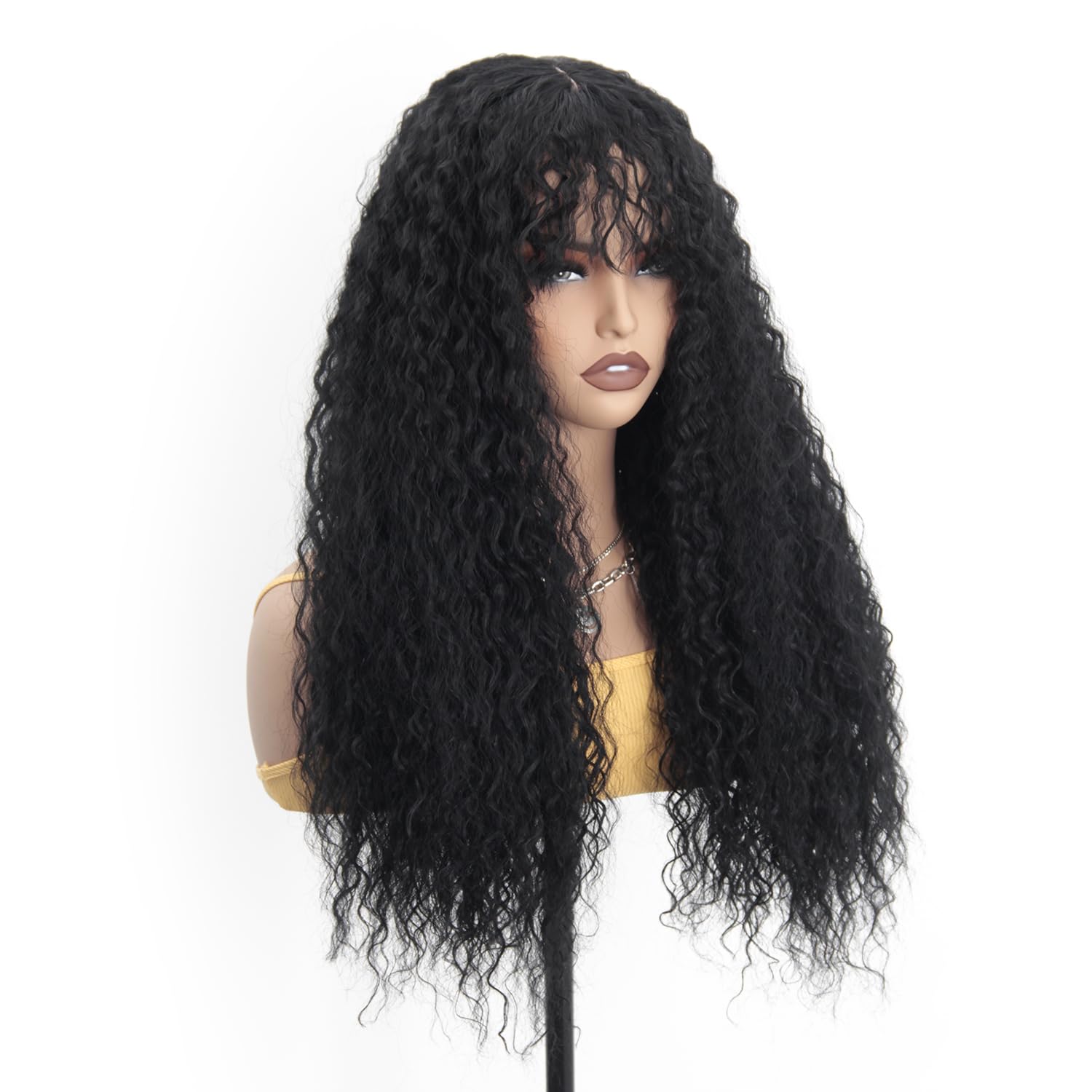 – Fashionable curly design with natural black color