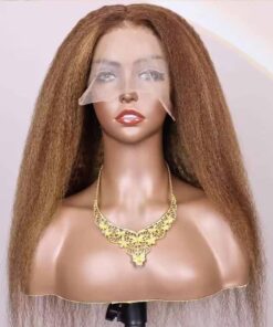 Highlight #4/27 Ombre Color Kinky Curly Wigs With 4C Kinky Edges Honey Blonde Color Curly Baby Hair 150% Density 13×6 Lace Front Human Hair Wigs Remy Human Hair 13×6 Lace Wig For Black Women 10 Inch