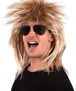 Kaneles Mullet Wigs for Men 80s Costumes Fancy Party Accessory Cosplay Halloween Wig (Light Brown)